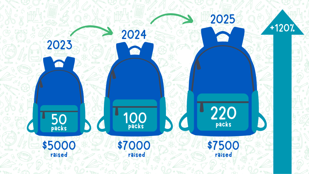 Since 2023, we’ve grown from a limited number of packs to 220 distributed in 2025 – a 120% increase on the year before. Demand is rising faster than donations, but our goal remains simple: no child in the Hutt Valley should start the school year without the essentials they need to thrive.