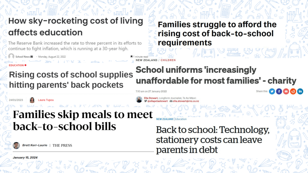 Going back to school should be exciting, but for many families it’s a financial strain. After the summer holidays, with costs for uniforms, devices, and holiday care already mounting, even the basics like exercise books, pens, and backpacks can be out of reach. Rising supermarket prices make it harder still: milk is up 15%, butter 22%, eggs 36% this year alone. Families are stretching every dollar.