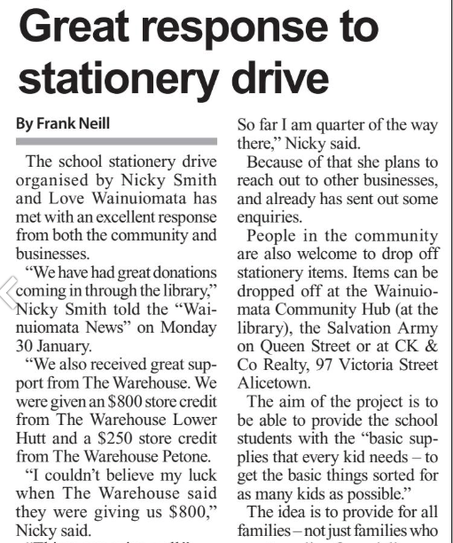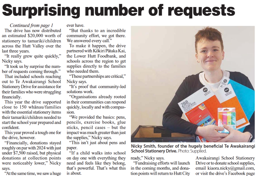 The Te Awakairangi School Stationery Drive has been featured in local and national media, highlighting the growing need for support and the difference our community is making together.